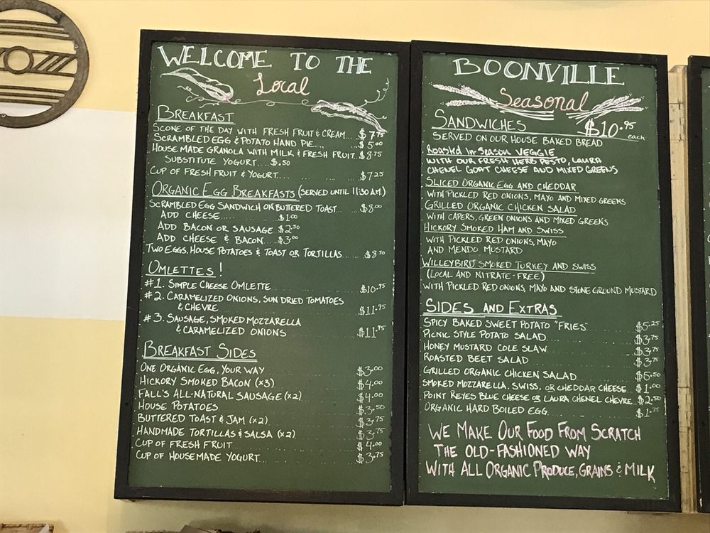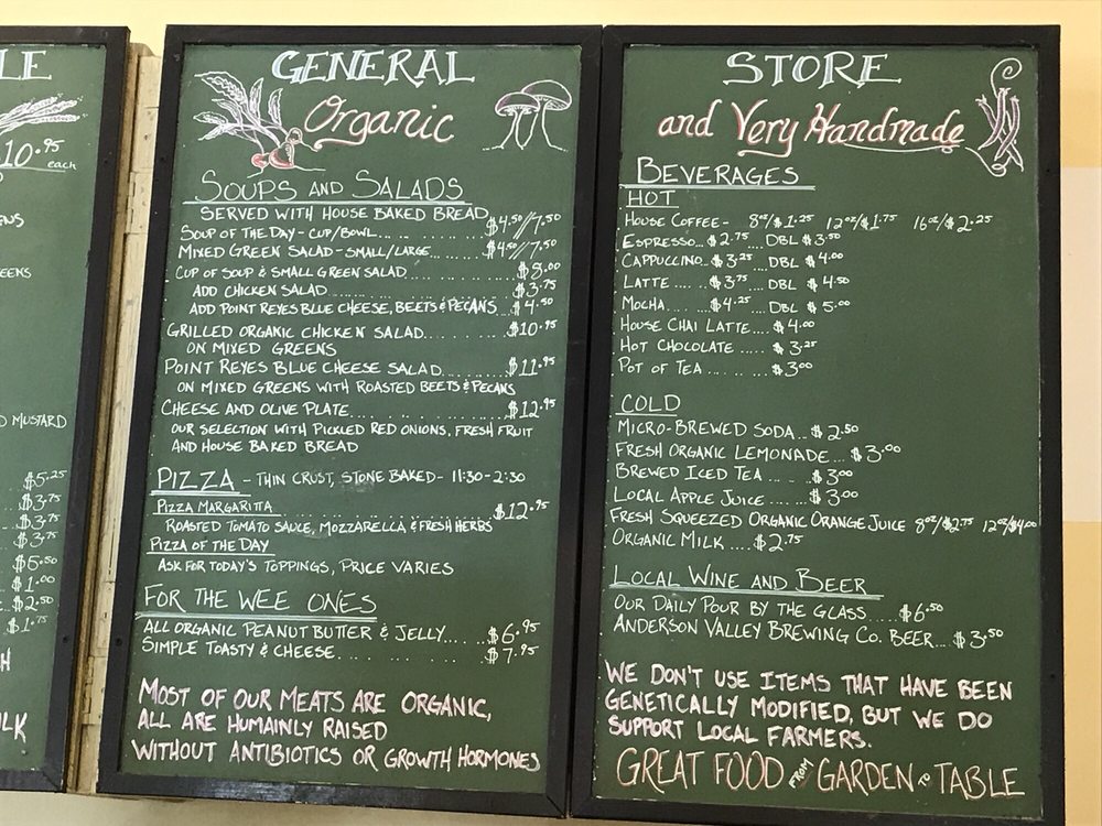The Boonville General Store Menu